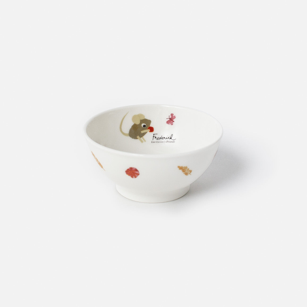 レオ・レオニが描く「フレデリック」をモチーフにした、アート性の高いデザインの子供食器。毎日の食事に欠かせないライスボールは、軽くて子供の小さな手でも持ちやすい形状にこだわりました。口の部分に厚みをもたせているため、衝撃に強く、割れにくいのも嬉しいポイントです。