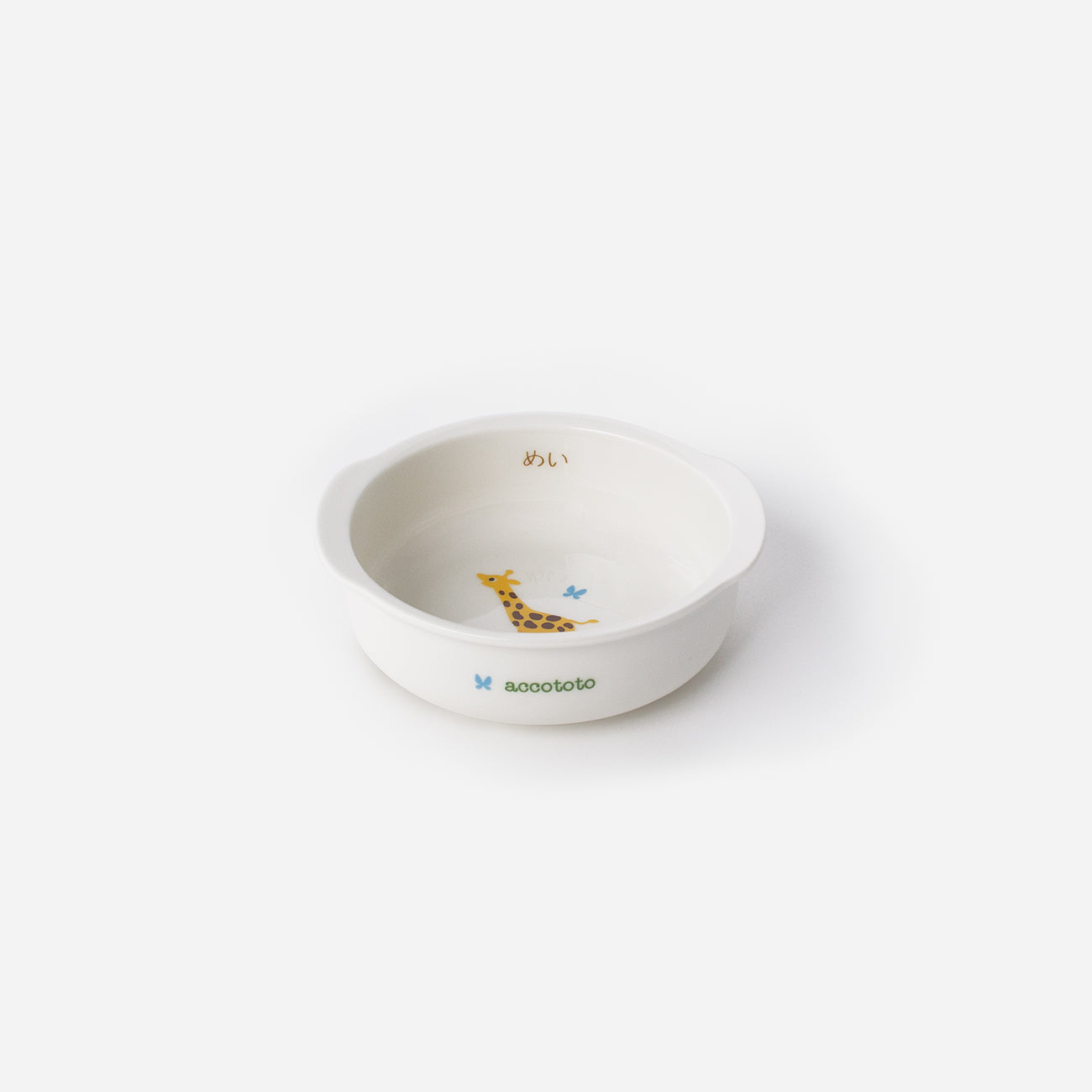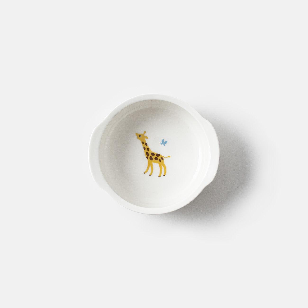 「元気に大きく育ってね」のメッセージを込めた、かわいいキリン柄。13cm小鉢は、離乳食を食べさせる時にも使いやすく、また、子供が育って自分で食べるようになった時にも食べやすい形状にこだわりました。離乳食時期には、口が広く中身を冷ましやすいのでとても重宝します。深さがしっかりあって、スプーンなどですくいやすい点も特長です。