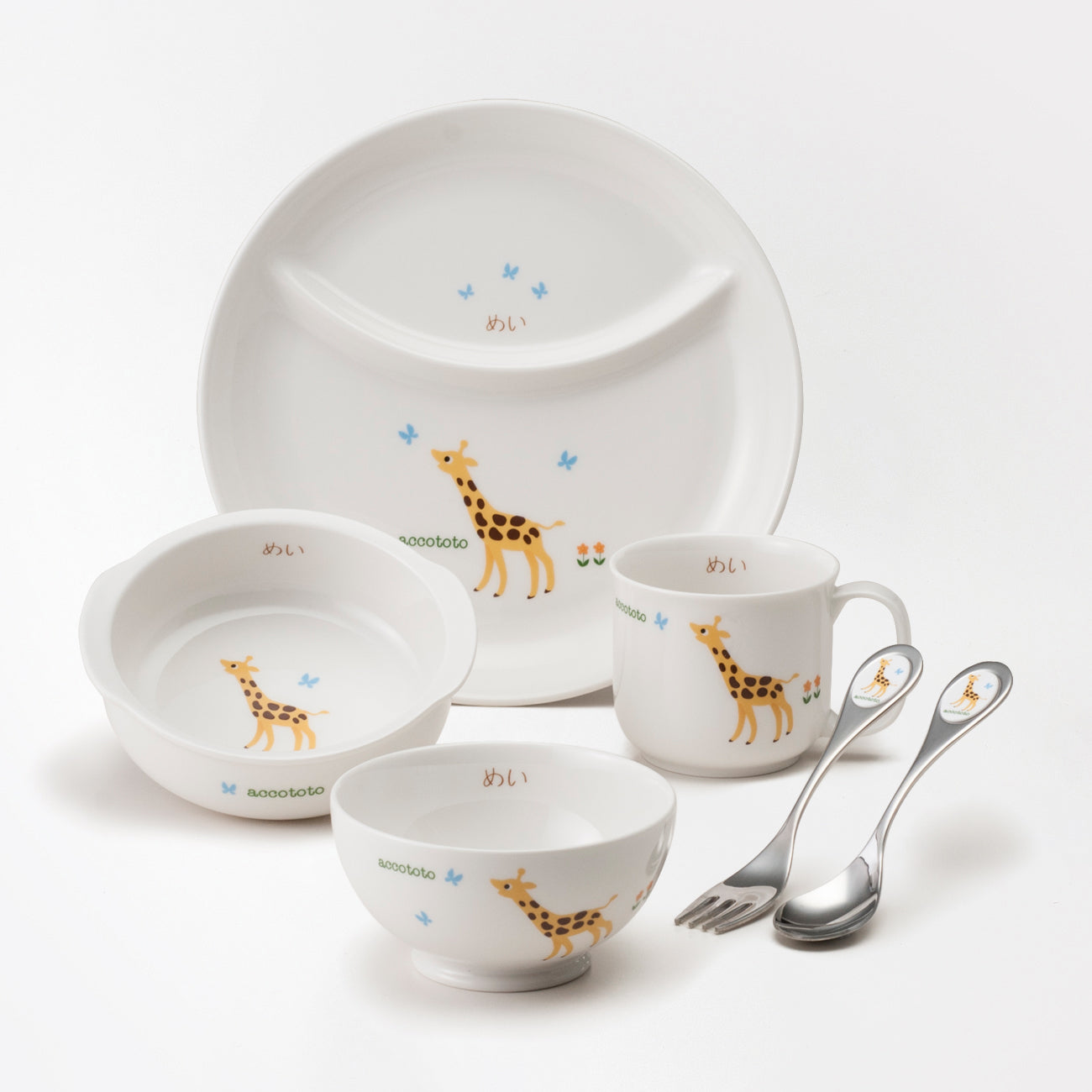 「元気に大きく育ってね」のメッセージを込めた、かわいいキリン柄の子供食器セット。安心安全にこだわった日本製の名入れ食器は、出産のギフトにもぴったりです。自分の名前入りの食器は、お子様のものを大切にする心をいっそう育みます。セット内容も使いやすいアイテムにこだわりました。13cm小鉢は、スープやグラタンなど色んなメニューに活用できるアイテム。深さがしっかりあって、スプーンなどですくいやすい形です。