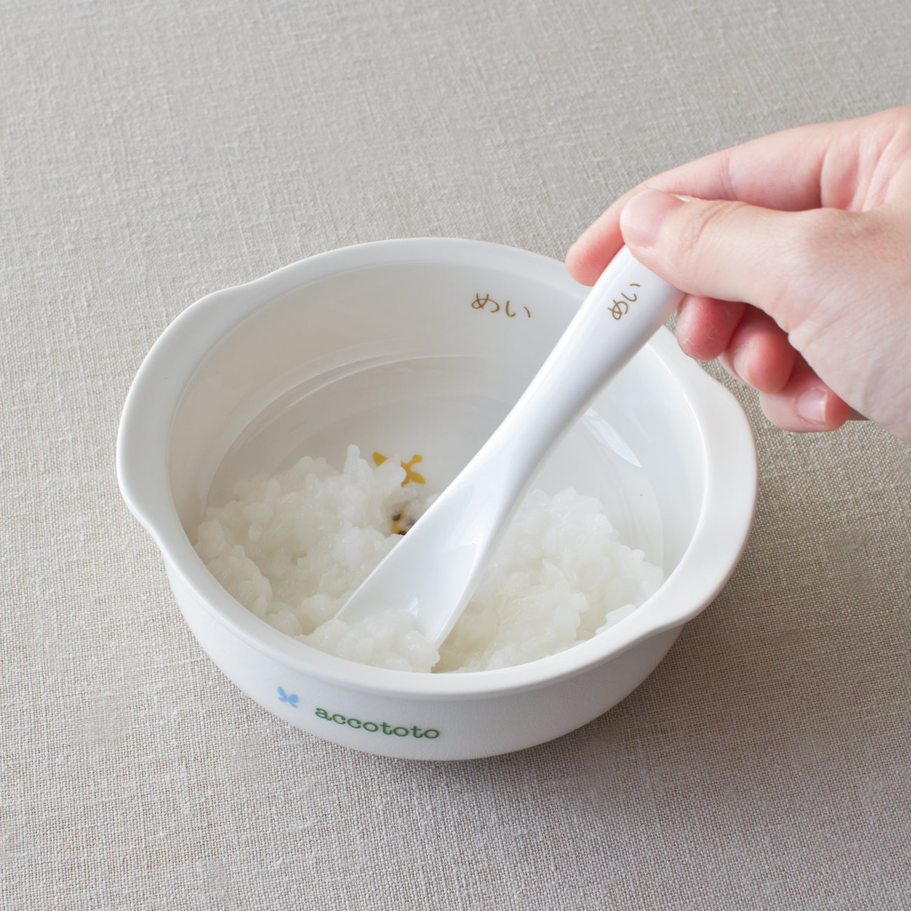 「accototo(アッコトト)」は ふくだとしお・あきこ夫妻の絵本作家ユニット。ふたりが描き出す動物たちは、シンプルながらも表情豊かで、いきいき楽しそう。お気に入りの器は、食べる楽しさや、ものを大切にする気持ちを育みます。