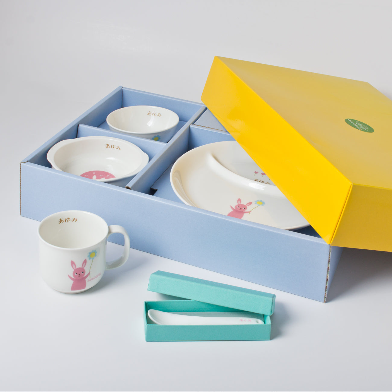 ネーム入りの子供食器セットは、専用のギフトBOX付でお食い初めや出産のギフトにおすすめです。