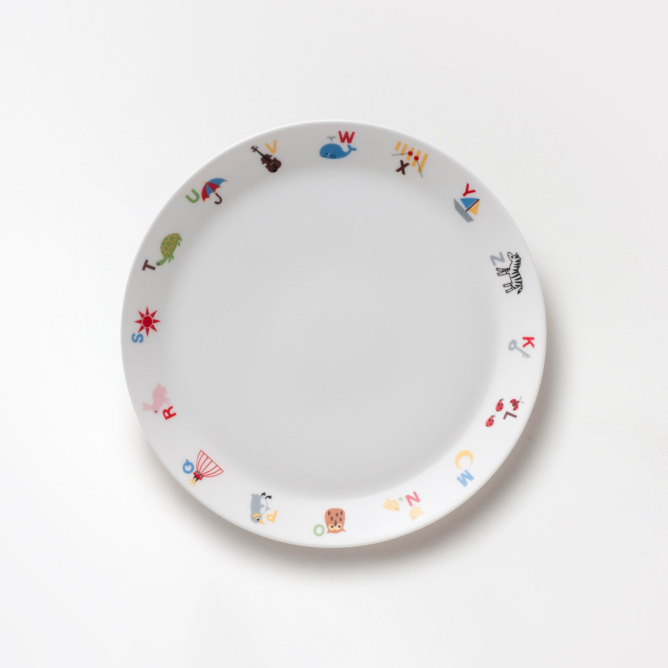 20cmプレートは、小学校低学年位までのお子様のメイン皿としてちょうどいいサイズ。リム部分に並んだカラフルなモチーフが、楽しい食事時間を彩ります。
