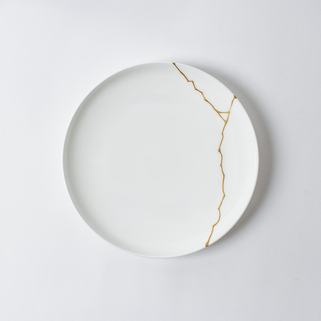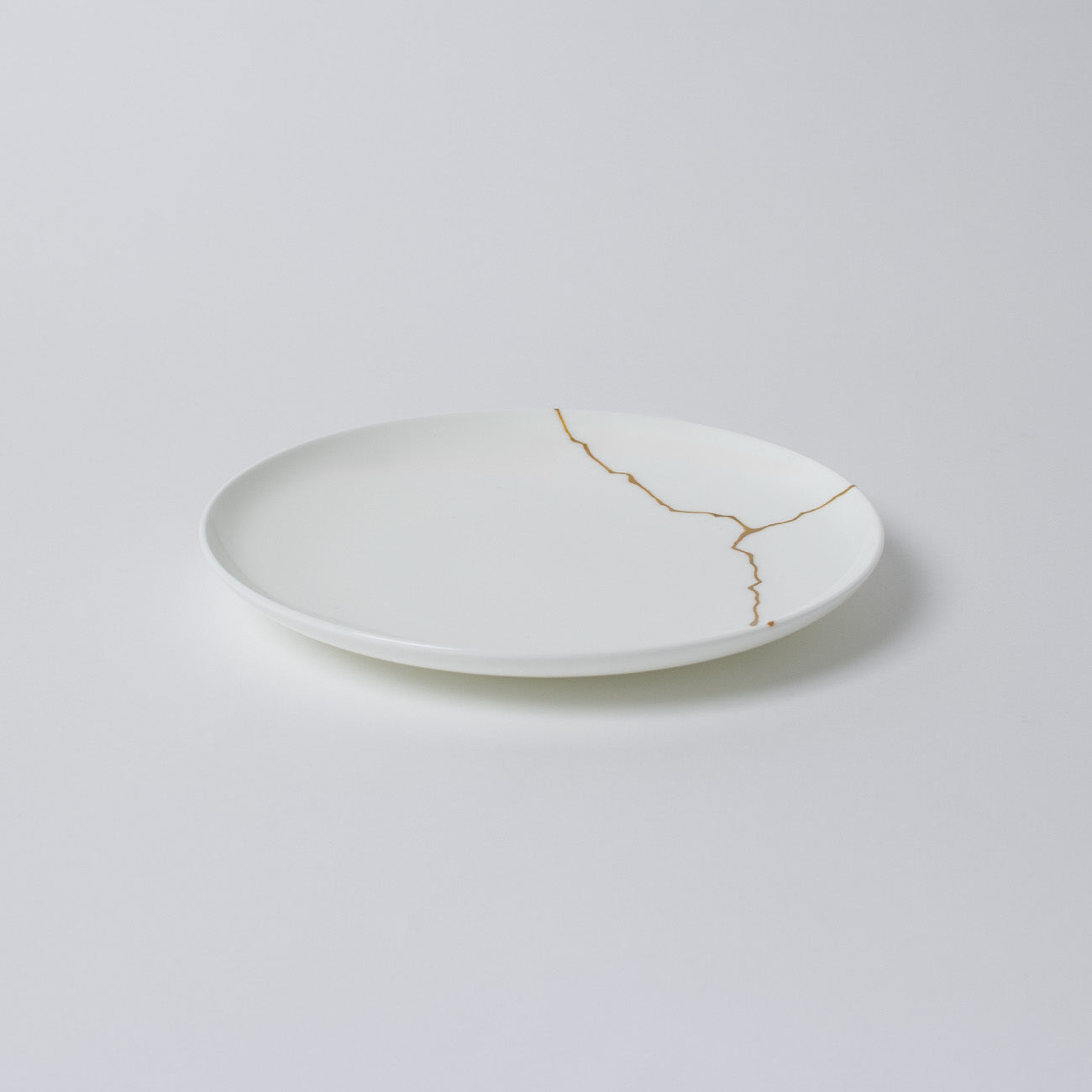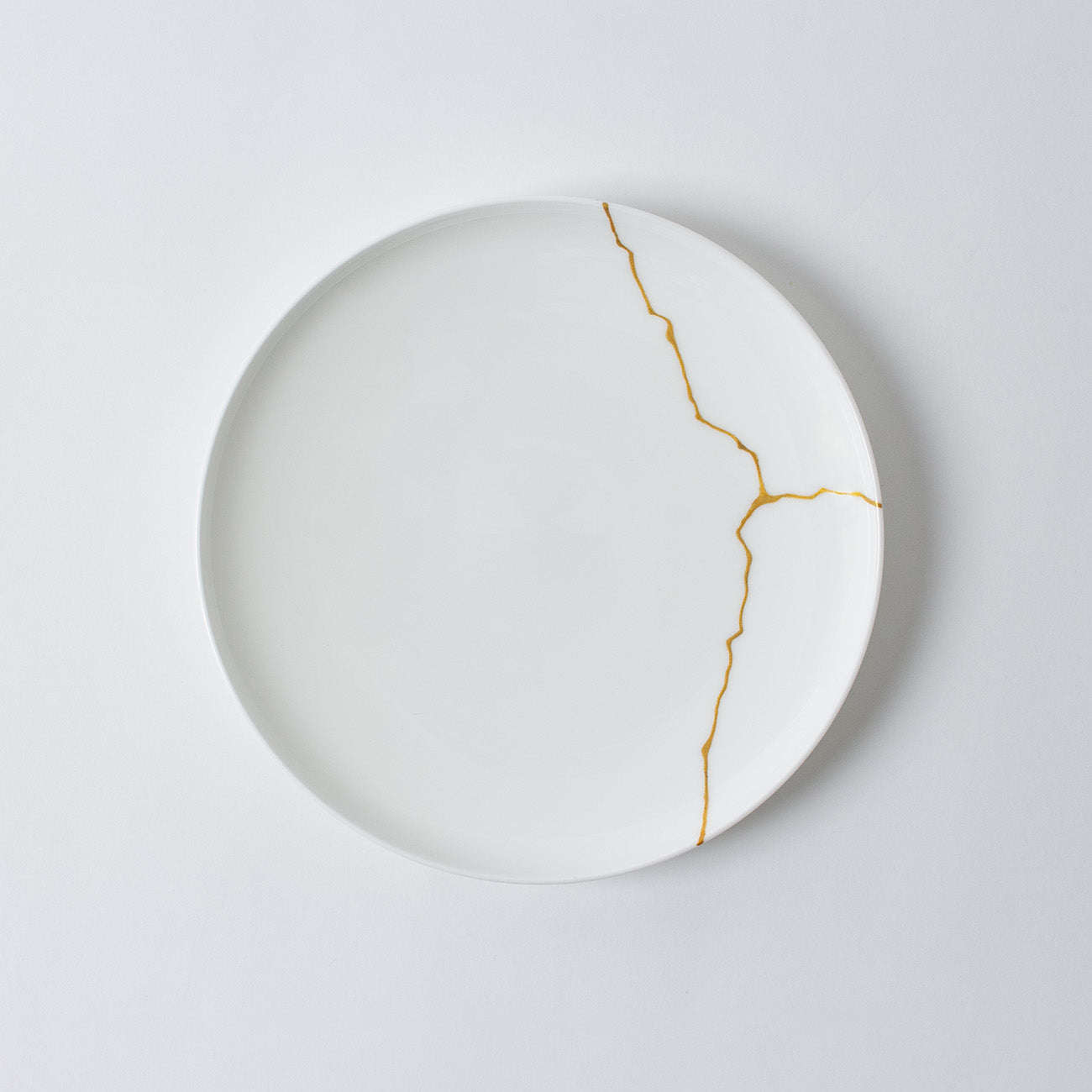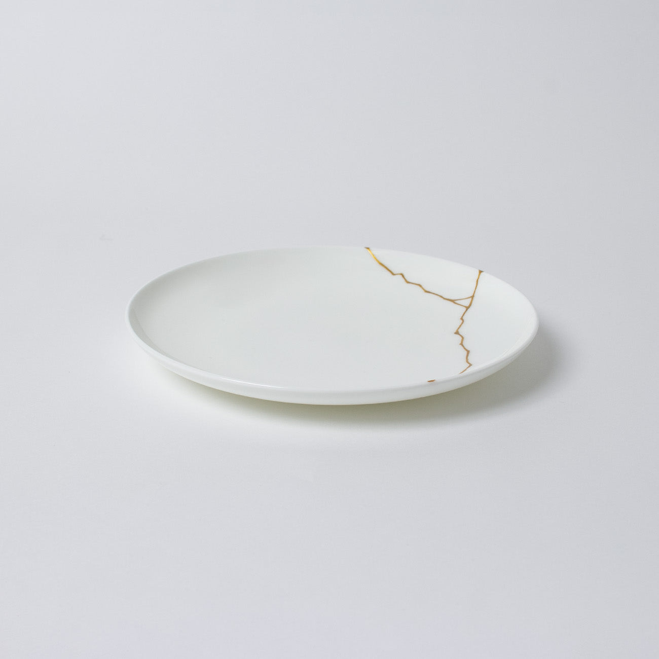 金継ぎのイメージをモダンにデザインしたプレートです。金マイカを使用し手描きで描かれた立体感のあるデザインで大きめの取り皿やメインプレートとして幅広くお使いいただける器です。