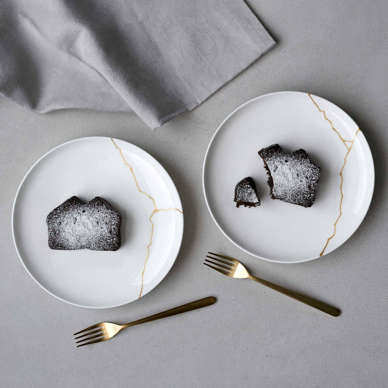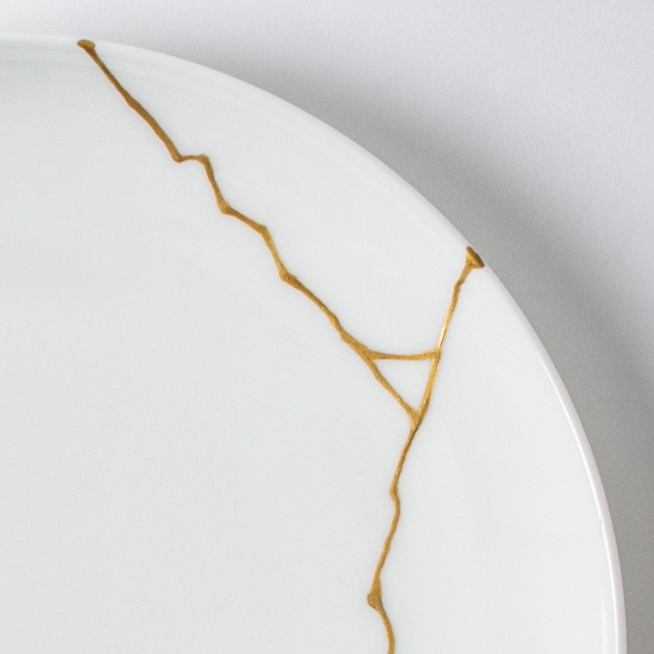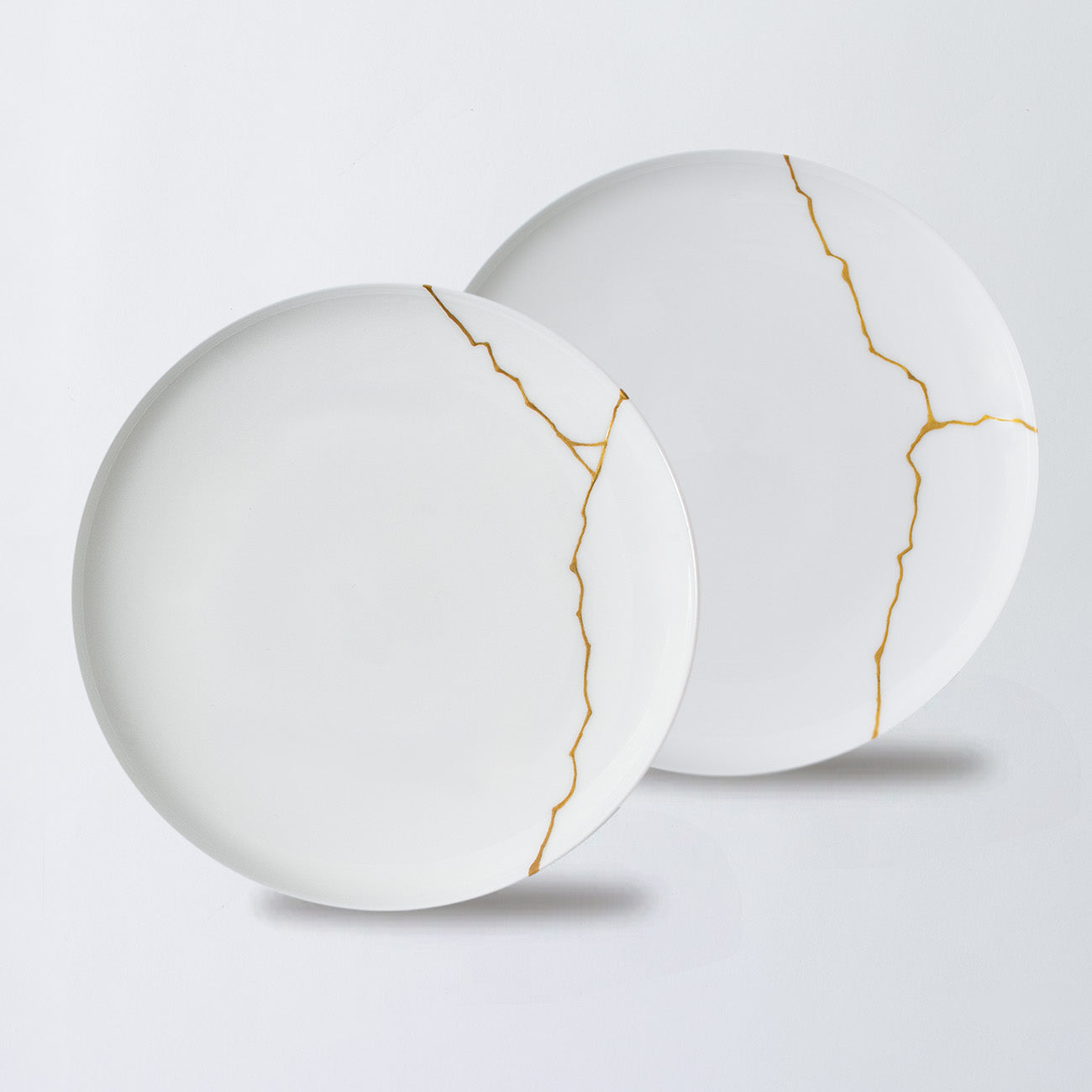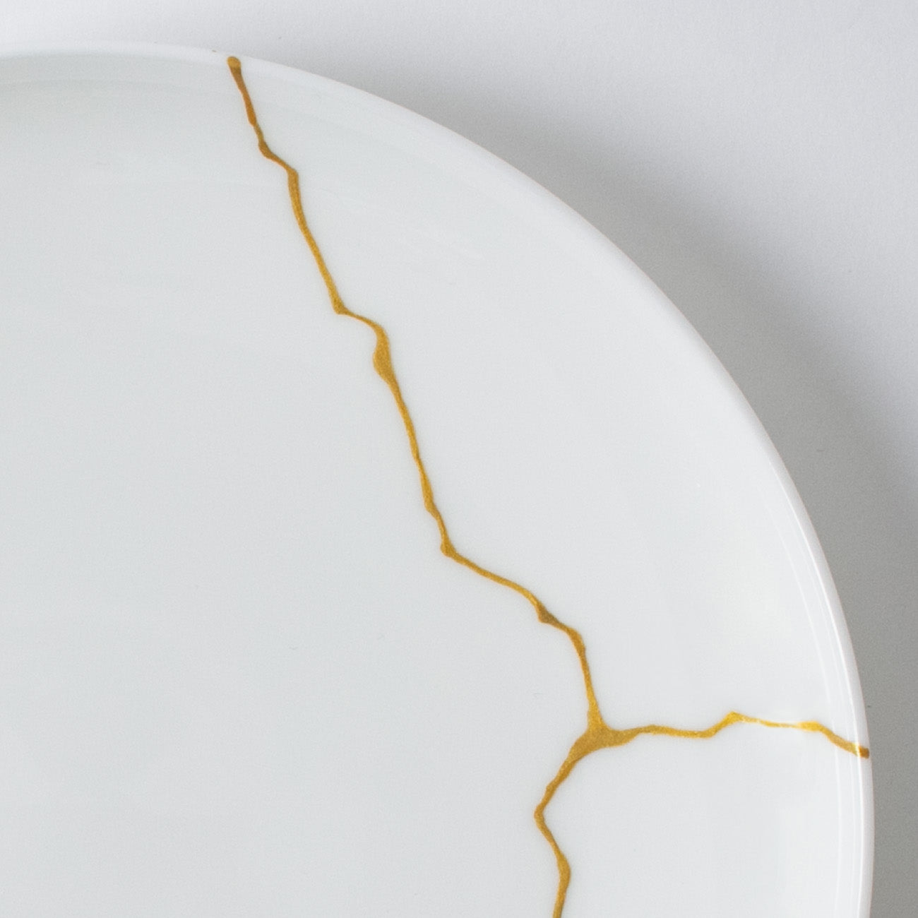 金継ぎのイメージをモダンにデザインしたプレートです。金マイカを使用し手描きで描かれた立体感のあるデザインで大きめの取り皿やメインプレートとして幅広くお使いいただける器です。