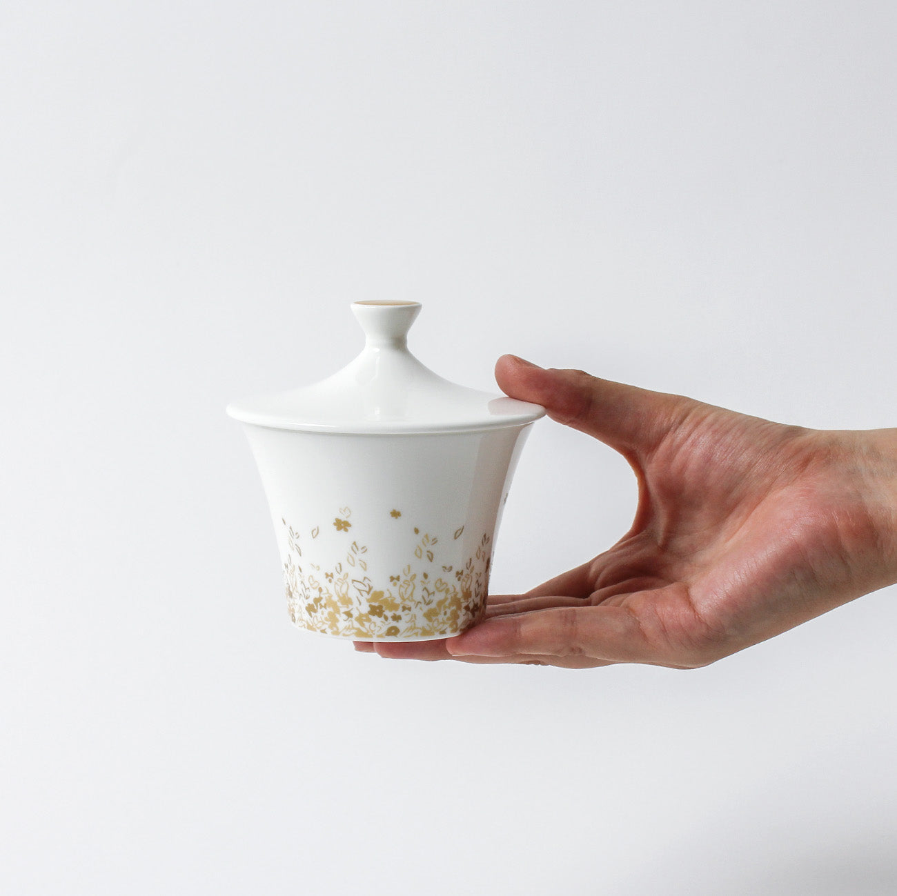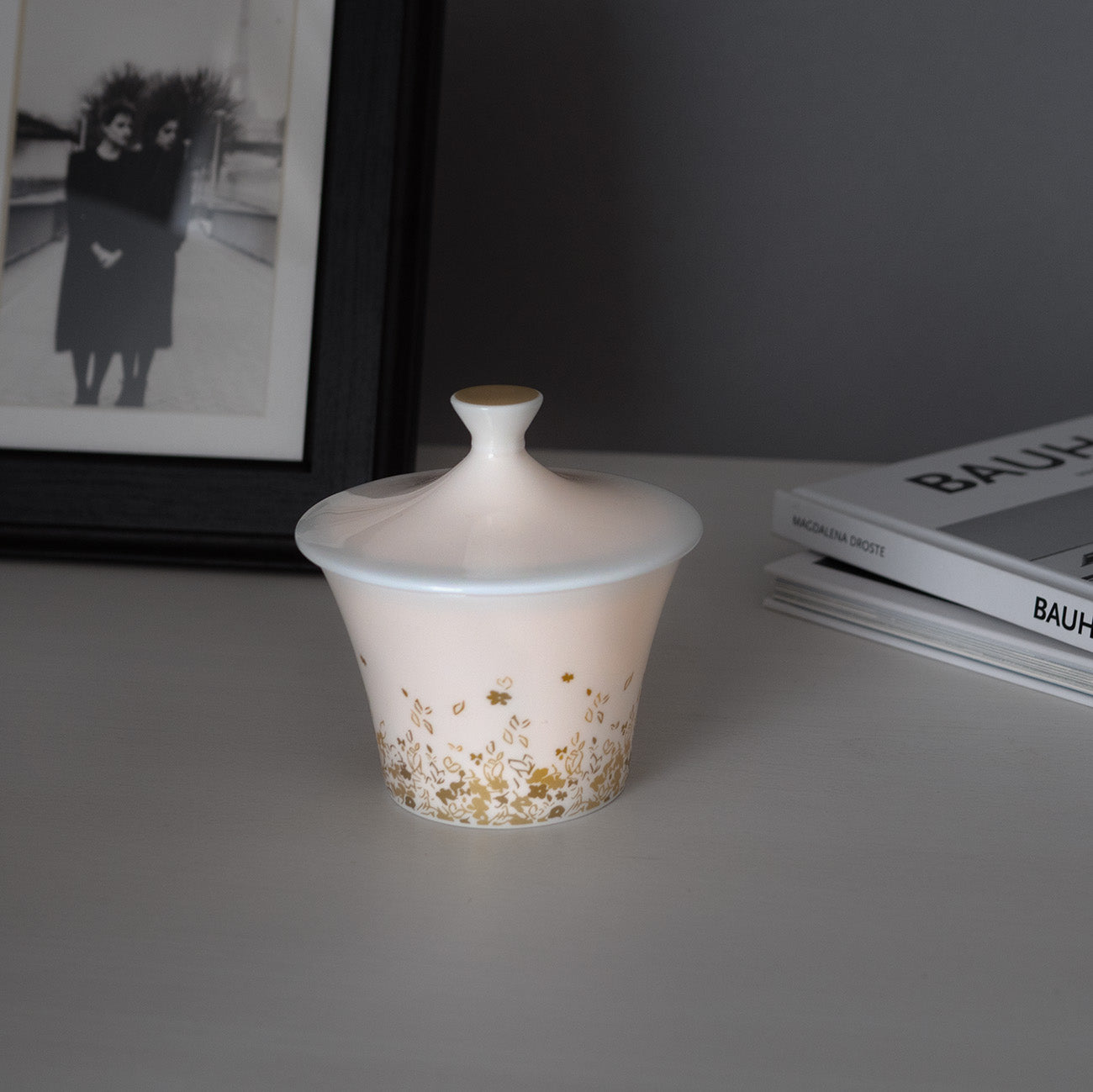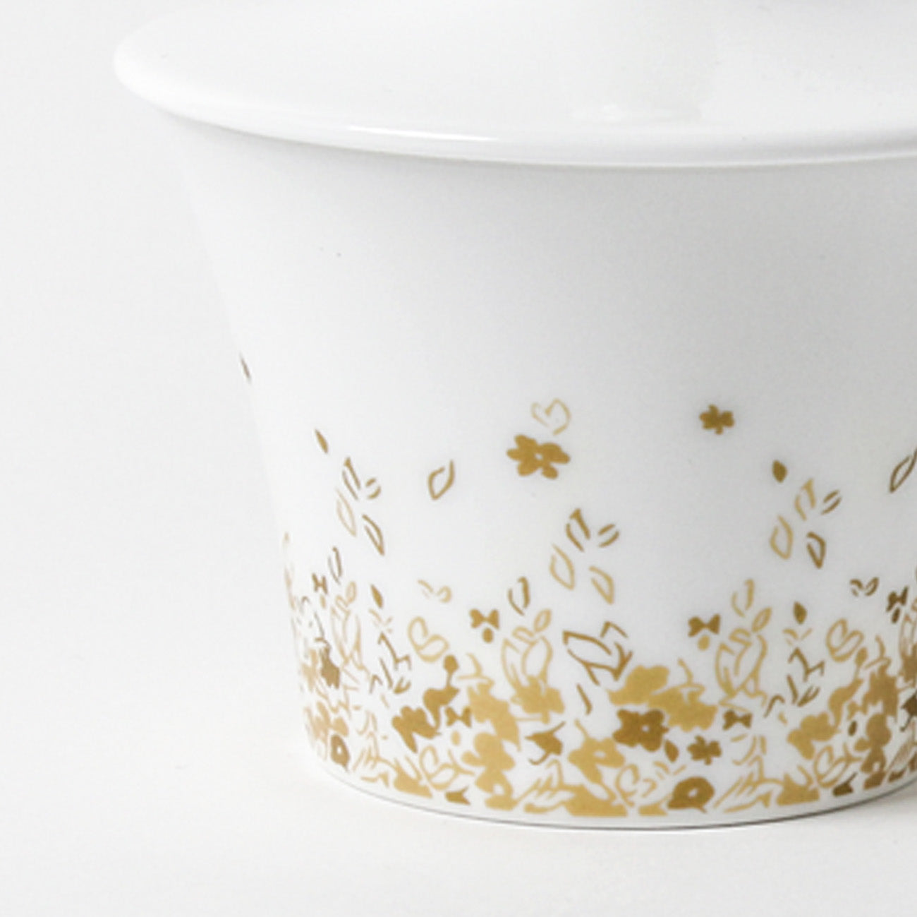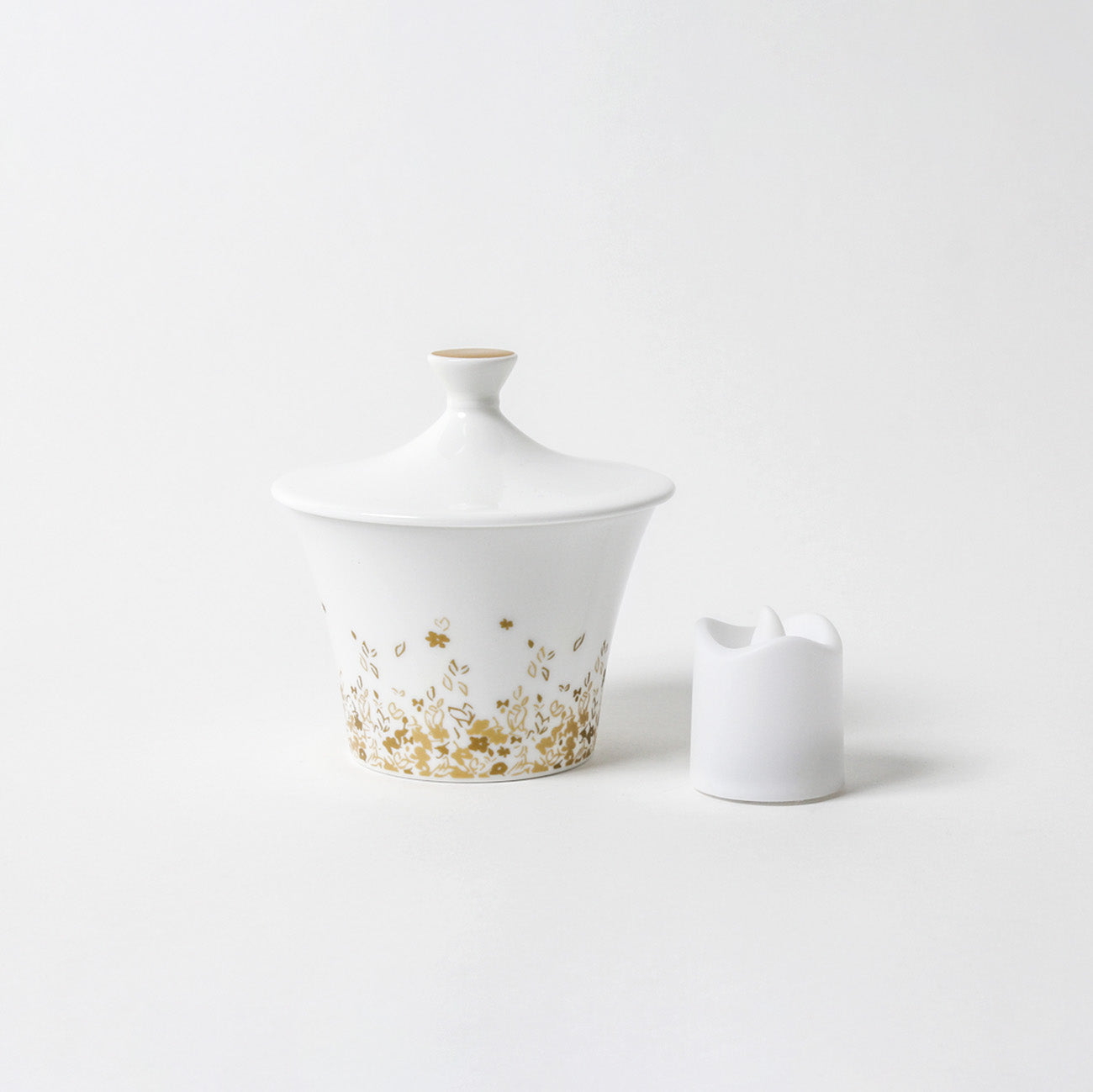 やわらかな光を楽しめるキャンドルホルダーです。ゴールドとマイカのフラワーパターンをあしらったナチュラルテイストのデザインです。