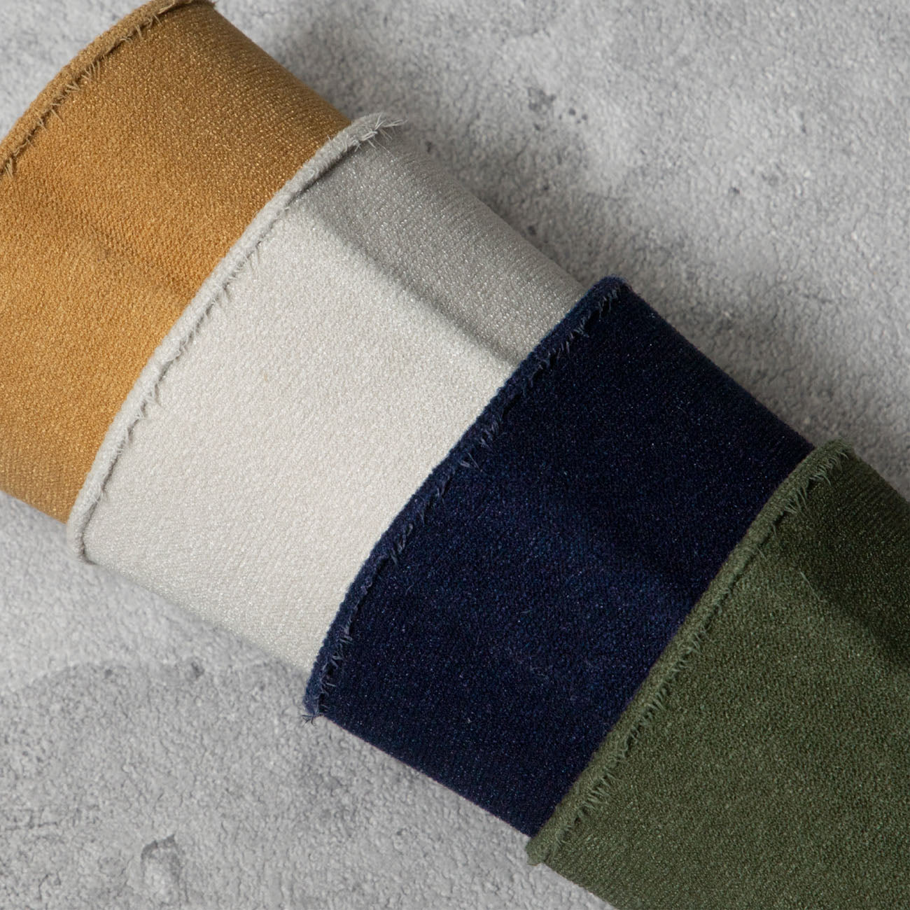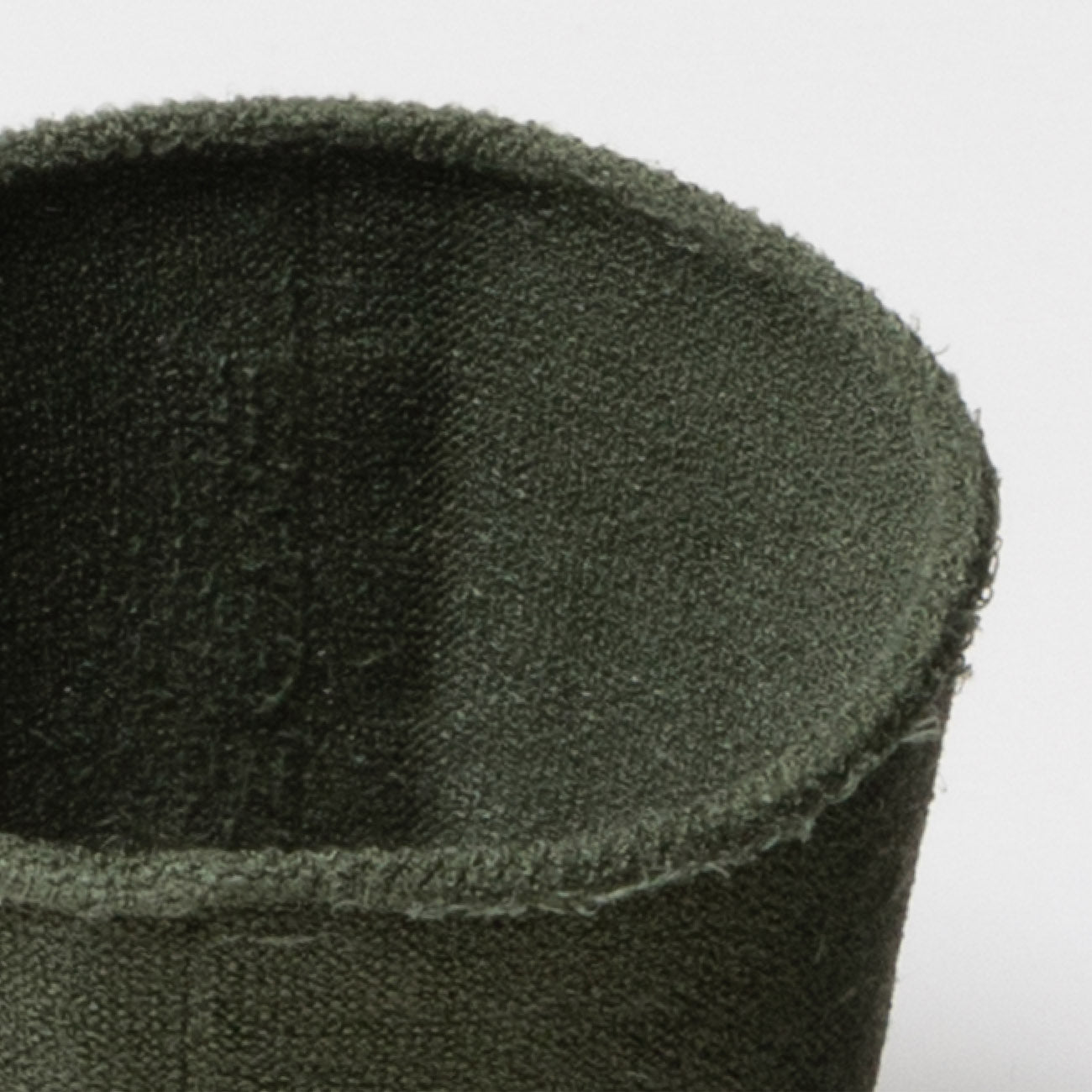 スリーブの素材にはナチュラルでドライな風合いと硬度からくる自立性、驚くほどの軽量さと強さが特徴の小松マテーレの素材「KONBU®」を採用し、染色には、捨てられるタマネギの皮から抽出した成分をベースに、廃棄される植物由来の天然成分を活用して染める環境配慮型素材「Onibegie®」の染色技術を使用しています。