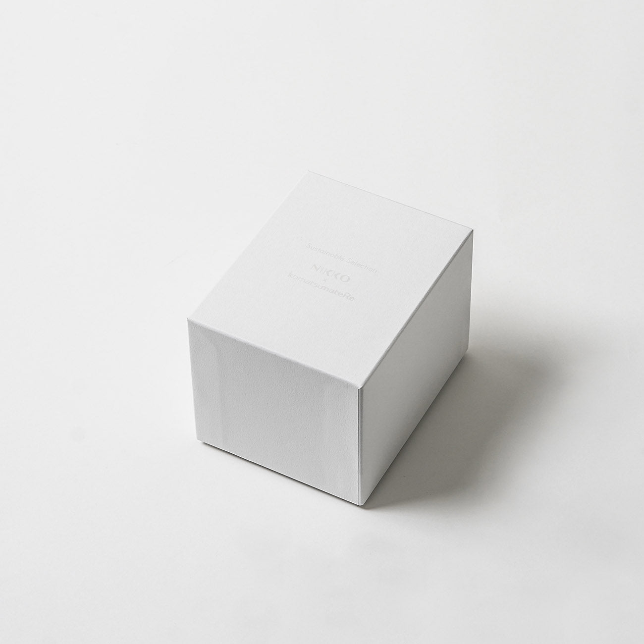 紙コップを模った形状にNIKKO FINE BONE CHINAならではの白さが際立つ、ユニークで美しいカップと専用スリーブのセットです。like a Paper Cup (出格子):金沢町家の美しい景観を形成している出格子「木虫籠(きむすこ)」に着想を得て、格子の割付が細かいという特徴を活かし、シンプルにデザインしました。白の盛りとマットによる繊細な表現が上品なカップです。