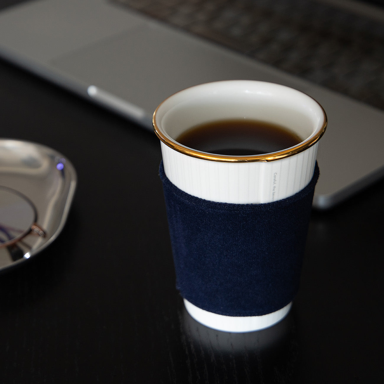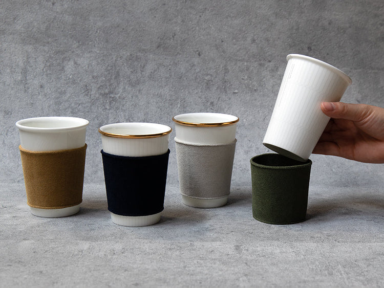 コーヒーを飲む際に使っている紙コップの代わりに、使い捨てしない陶磁器でできたカップを利用することで無駄を削減したいという思いを、このカップとスリーブに込めています。