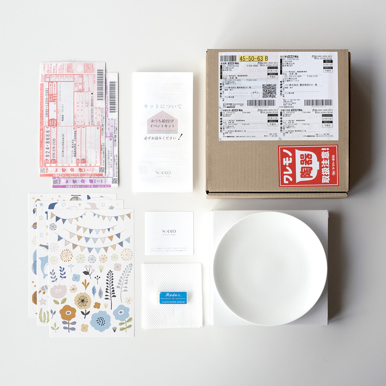 おうちで楽しく手作りできる「おうち絵付けイベントキット」。