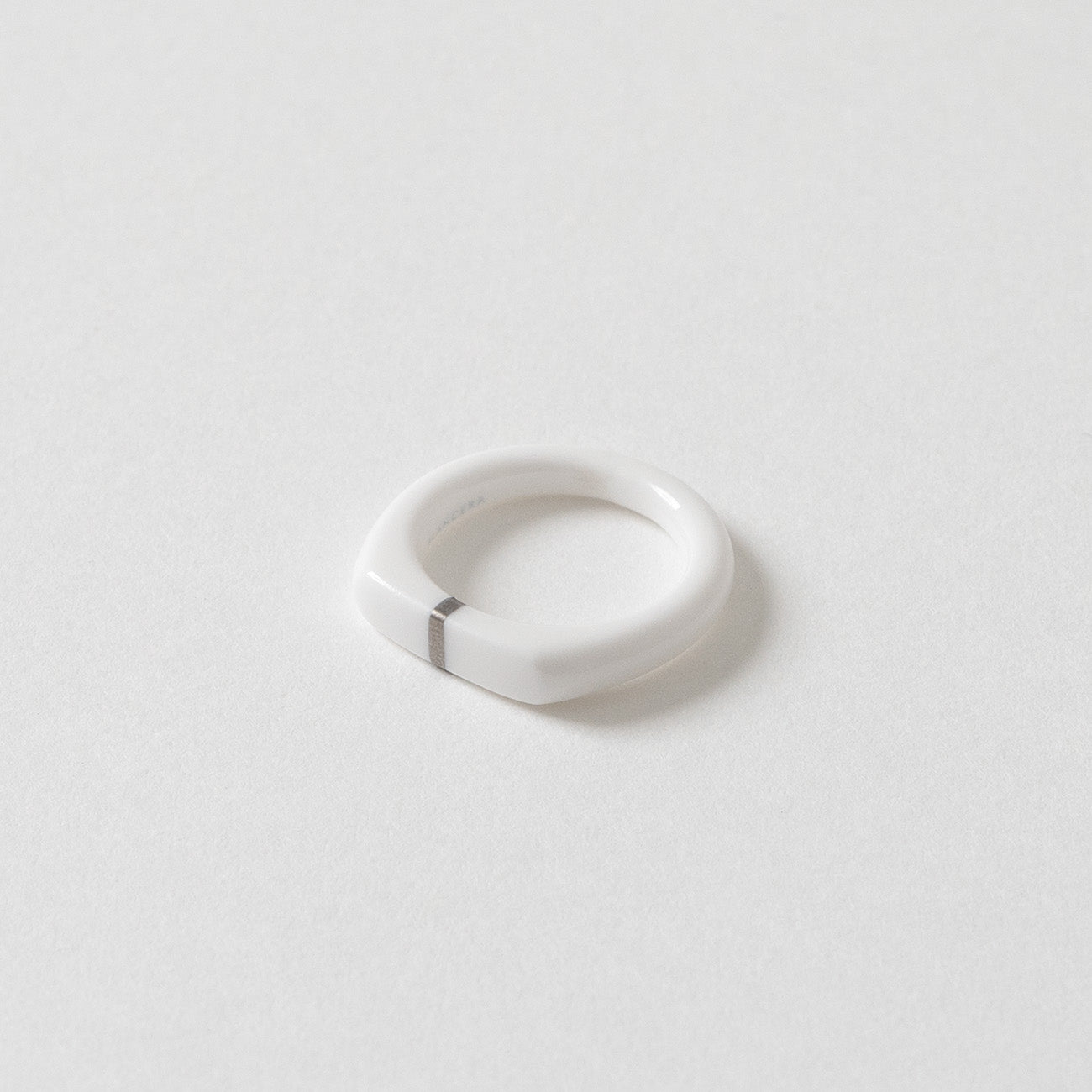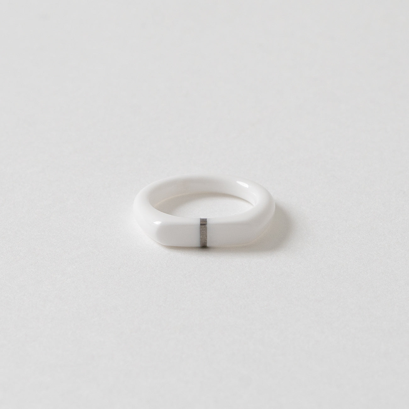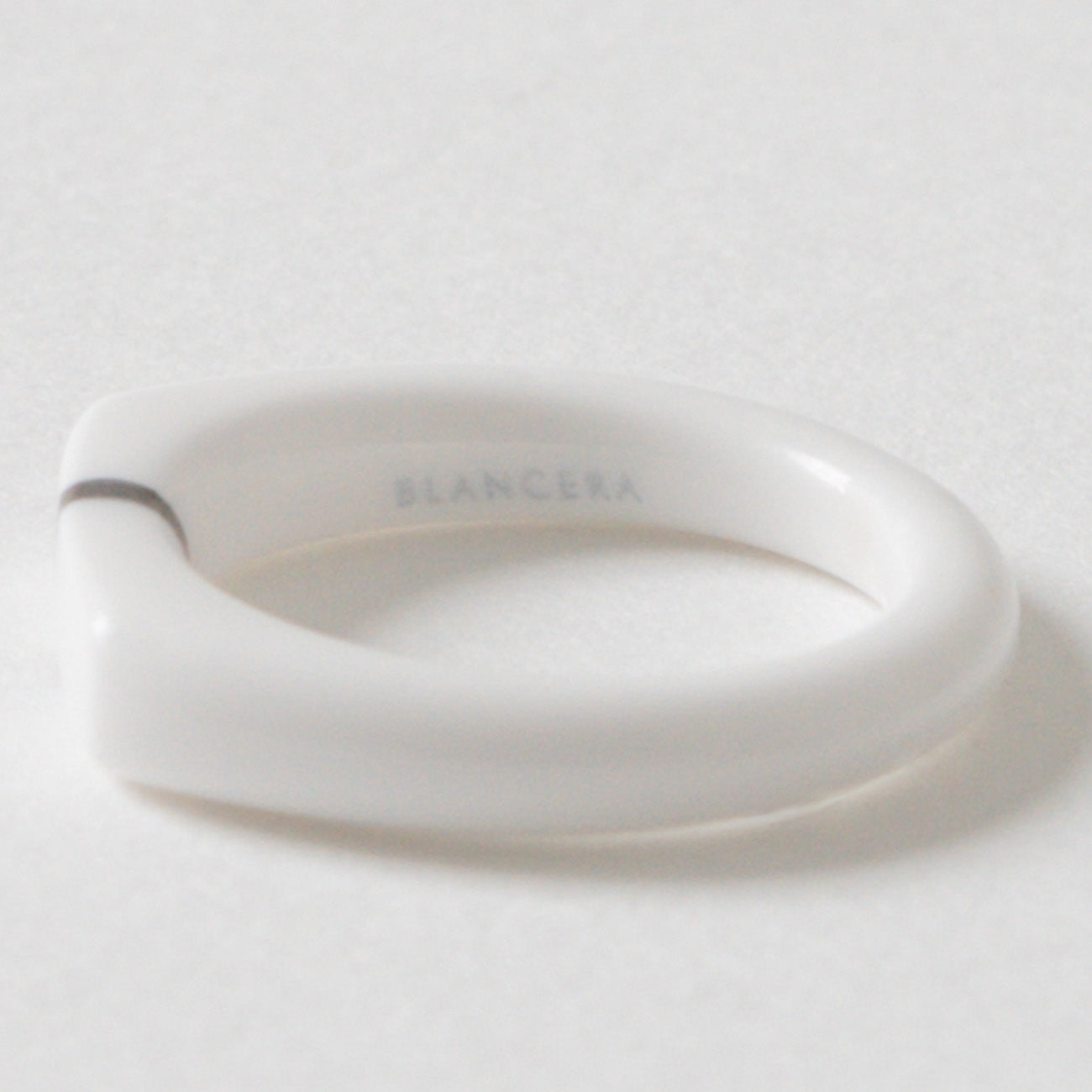 つるりとした質感と優しい肌当たりが心地よいセラミック(アルミナ)製のリングです。金属アレルギーのある方でも安心してお使いいただけます。シルバーのラインがさりげなく輝き、純白の素地を引き立たせます。