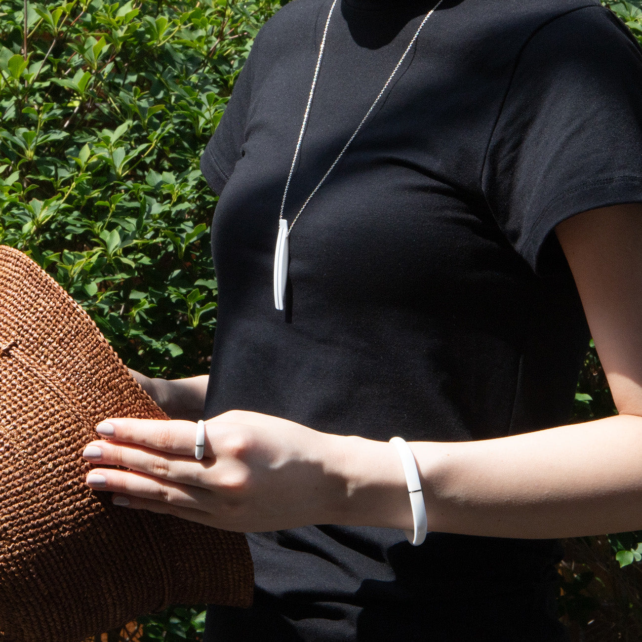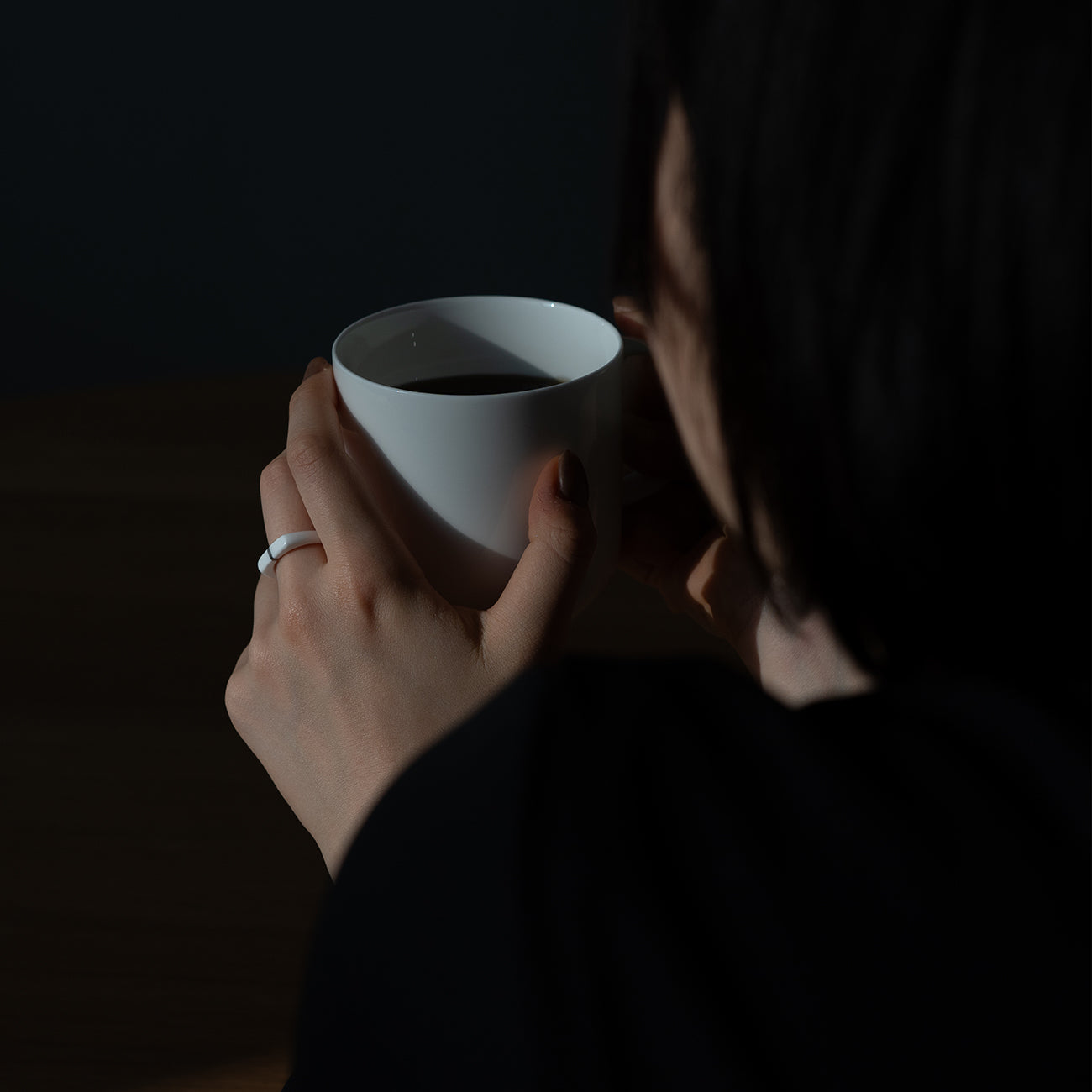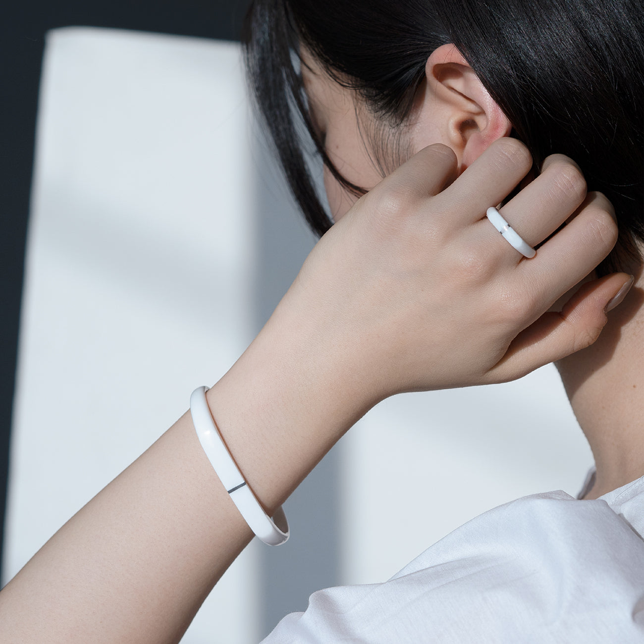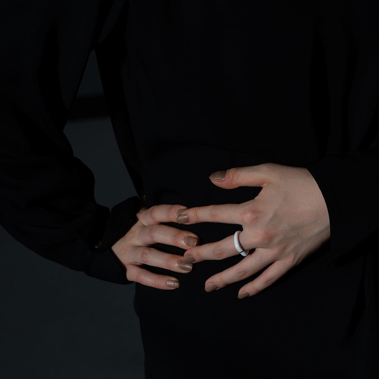 つるりとした質感と優しい肌当たりが心地よいセラミック(アルミナ)製のリングです。金属アレルギーのある方でも安心してお使いいただけます。シルバーのラインがさりげなく輝き、純白の素地を引き立たせます。