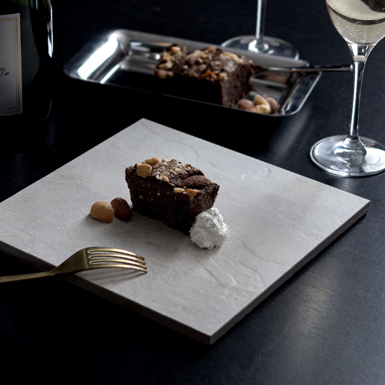 uptile dish(アップタイル ディッシュ)シリーズは、ニッコーのバンクチュール事業部の手がけるオーダーメイドバスルームブランド「BAINCOUTURE(バンクチュール)」を製造する際に生じる余剰タイルや、補修用として一定期間保管していたタイルに加工を施し、再生した食器です。
