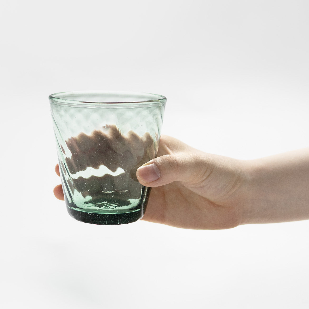 廃車の窓ガラスをアップサイクルした、モール(波模様)柄のタンブラー。■限りある資源を活用した 新プロジェクト「mado(まど)」